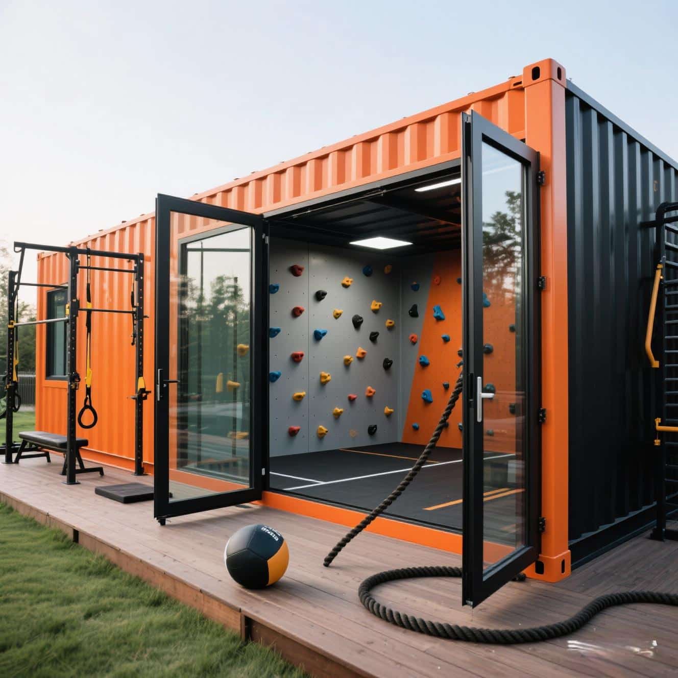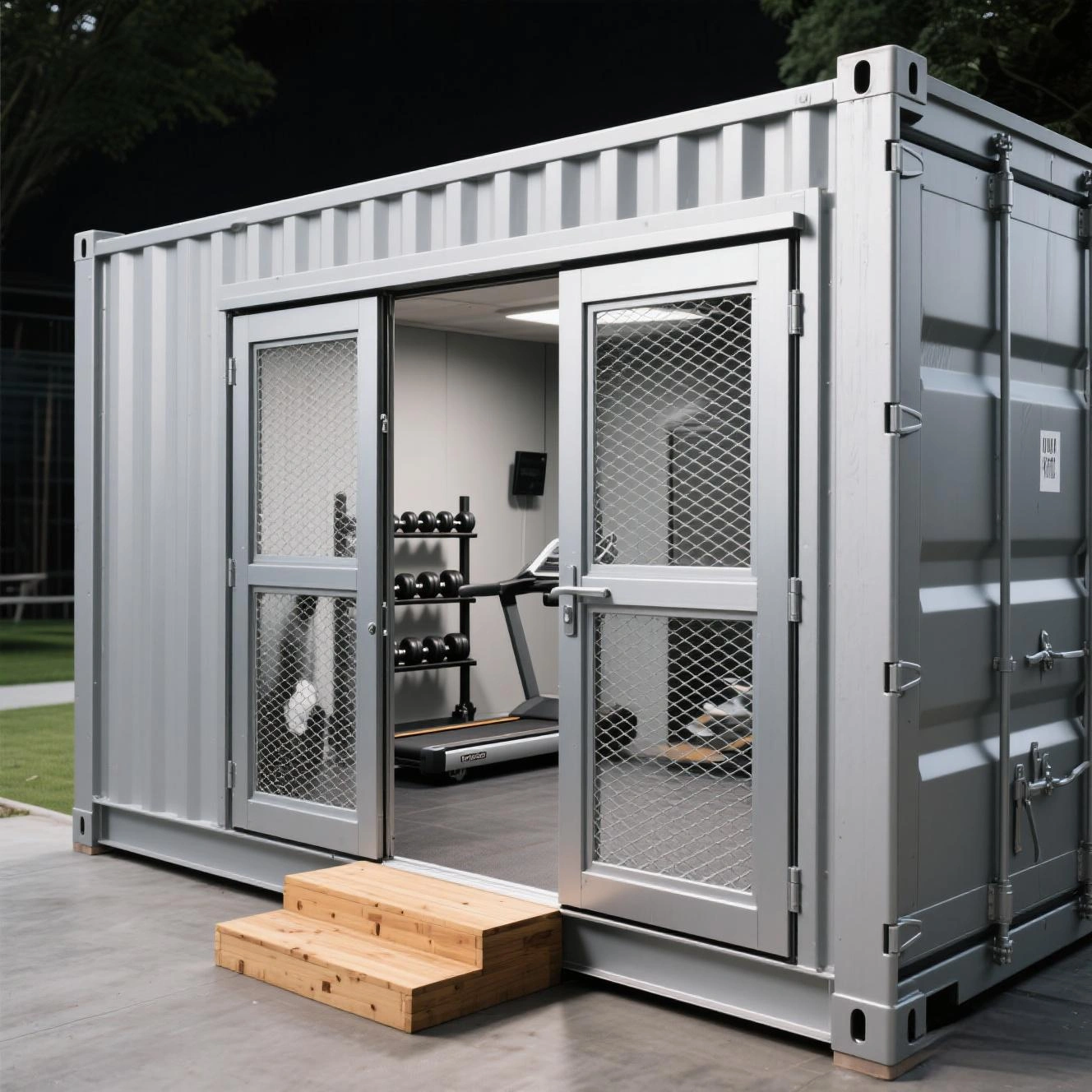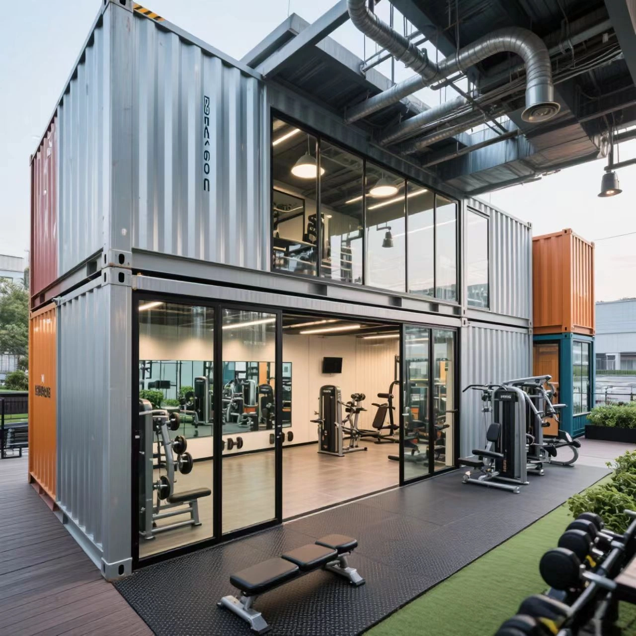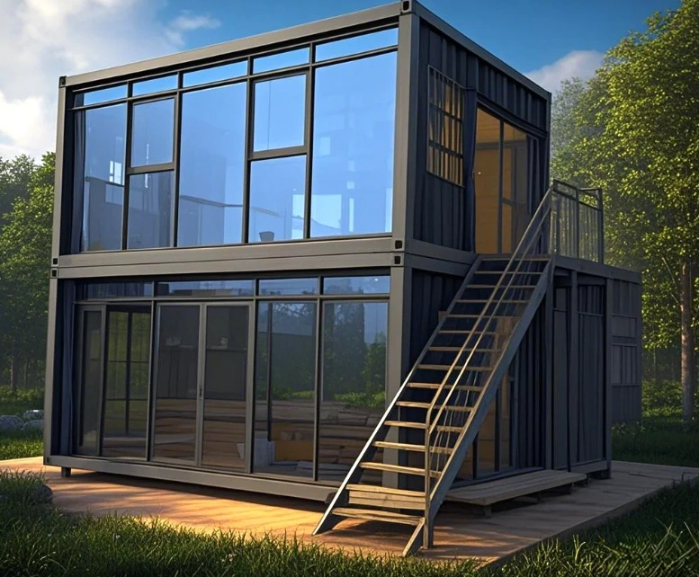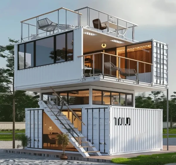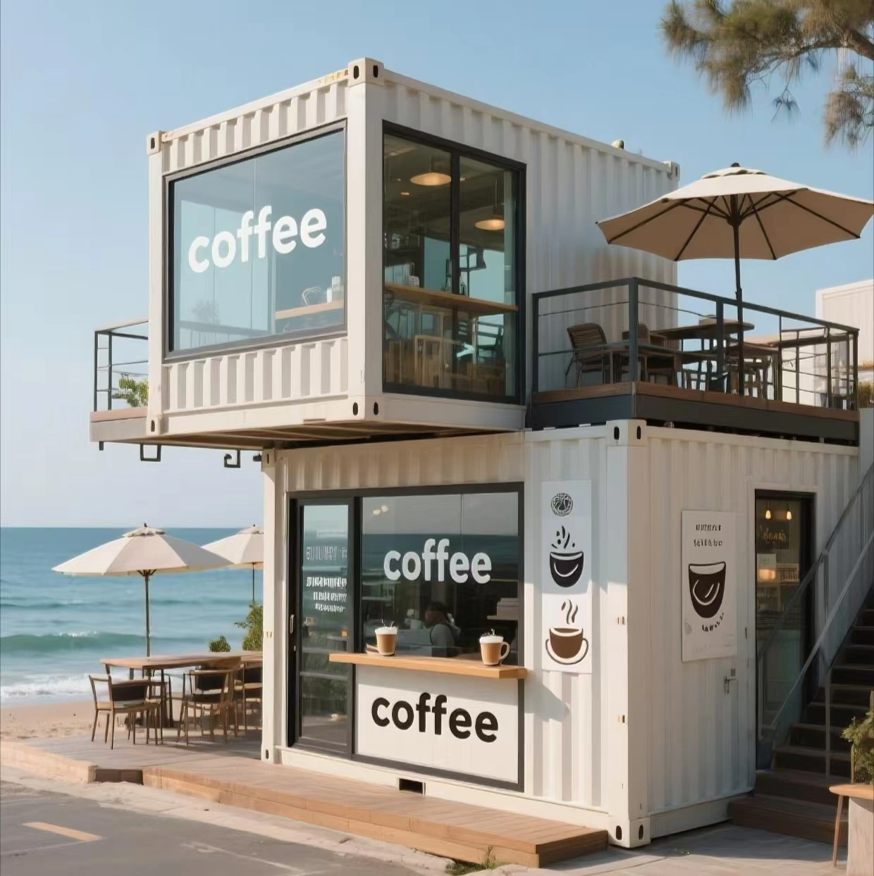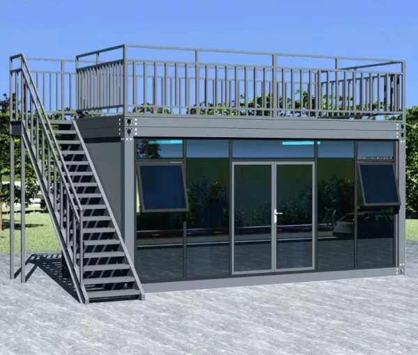 For 2 story shops or business containers that require access to the roof, all guard rails and stairways are included